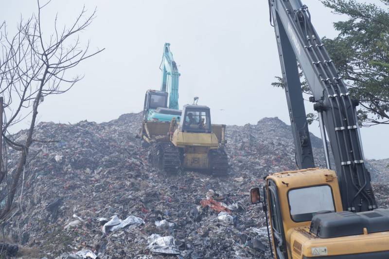 Ratusan petugas yang dikerahkan, saat ini dibagi kebeberapa titik, untuk dilakukan pengerukan gunungan sampah dengan alat berat DPUPR Kota Tangerang. Tindakan ini diiringi dengan penyemprotan air pada BPBD Kota Tangerang beserta jajaran personel gabungan lainnya.