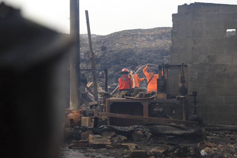Pantauan di lapangan, kepulan api di lokasi kejadian sudah tak terlihat. Namun, kepulan asap tebal masih menyelimuti sebagian area, terutama di area pintu tiga TPA Rawa Kucing, (23/10/23).