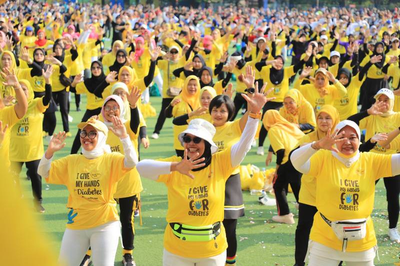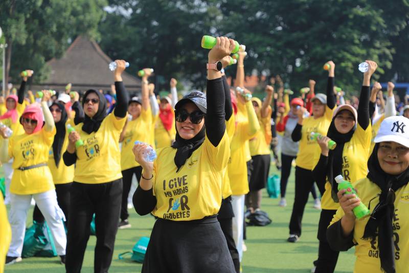 Dalam memperingati World Diabetes Day 2023, PT. Nutrifood Indonesia melalui Tropicana Slim mengadakan kegiatan senam sehat bersama dengan tema I Give My Hands for Diabetes, di Lapangan Ahmad Yani, Kota Tangerang, Minggu (12/11/2023).