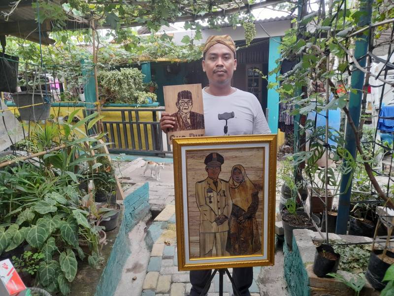 Memanfaatkan limbah menjadi sebuah karya seni, Wahyu Pahroji (28) warga Kampung Pakcoy, Kelurahan Karawaci, Kecamatan Karawaci, Kota Tangerang sukses membuat lukisan berbahan dasar pelepah pisang atau gedebok.