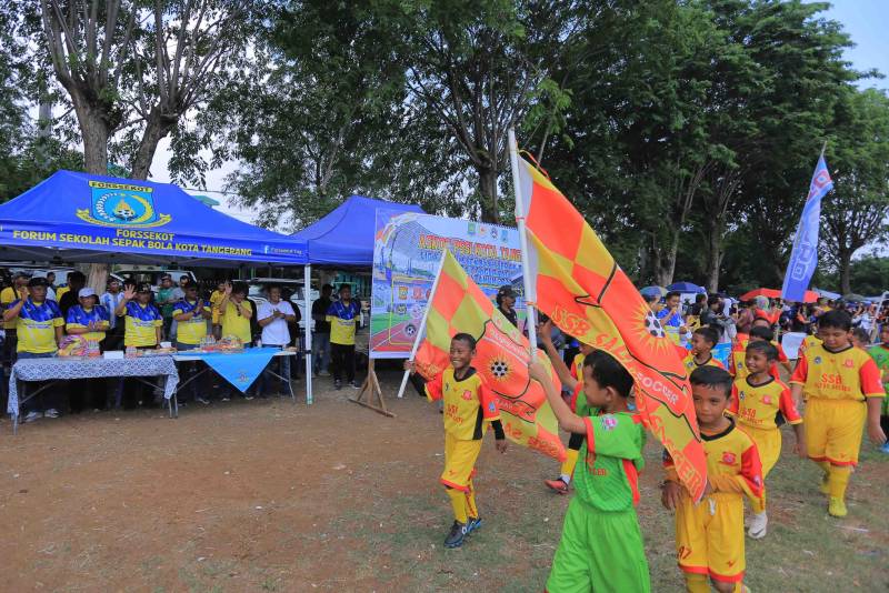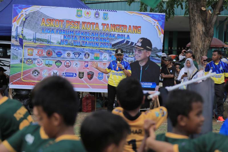 Wakil Wali Kota Tangerang, H. Sachrudin, membuka Liga Forum Sekolah Sepak Bola Kota Tangerang (Forssekot) yang digelar oleh Askot PSSI Kota Tangerang tahun 2023 di Lapangan Sepak Bola Komplek Perhubungan Udara, Kecamatan Benda Kota Tangerang, Minggu (19/11).