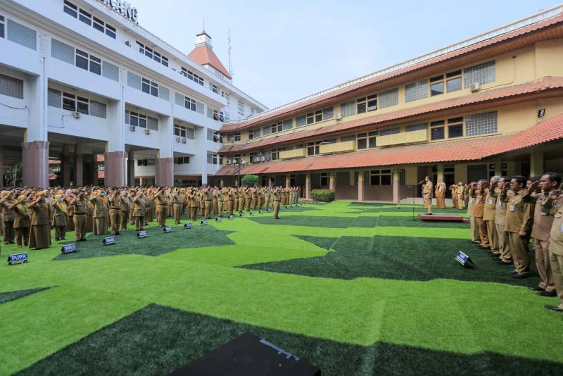 “Dan disiplin yang paling sederhana yaitu dengan mengikuti apel pagi, yang harus kita jalani karena pada saat apel itu nggak sekadar silaturahmi, berbagi informasi, tapi melatih kedisiplinan, mengukur tanggung jawab kita,” ucap Arief, saat menyampaikan arahannya.
