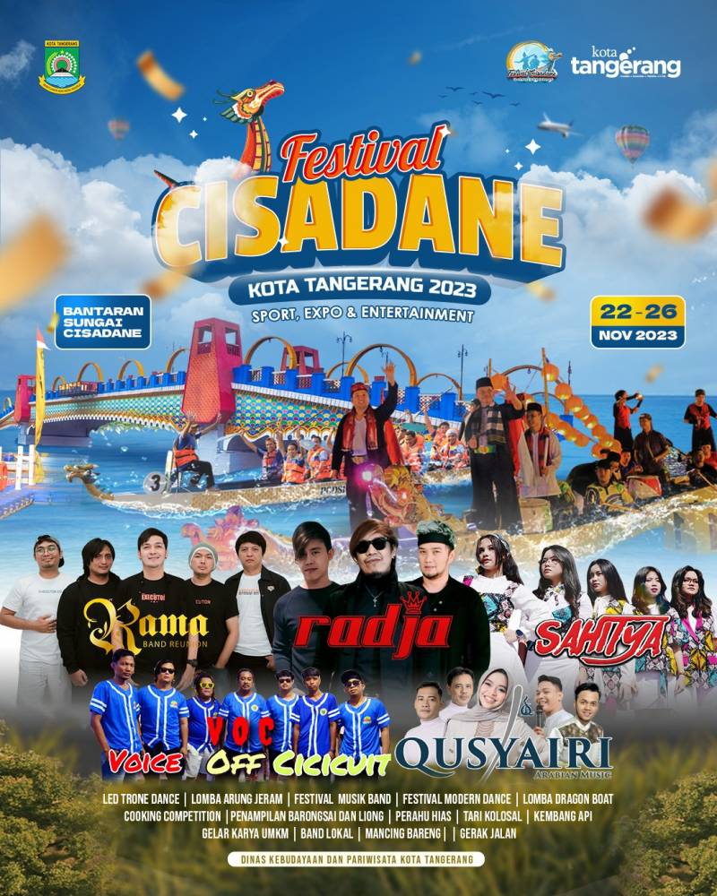 Festival Cisadane 2023 sebentar lagi akan dibuka secara resmi oleh Pemerintah Kota (Pemkot) Tangerang. Salah satu festival terbesar yang menjadi hiburan masyarakat tersebut akan digelar mulai besok, 22-26 November 2023 mendatang.