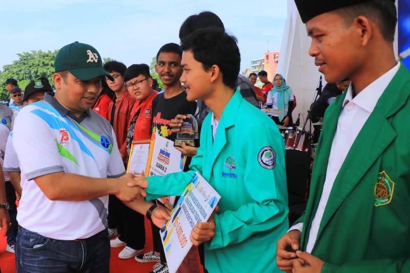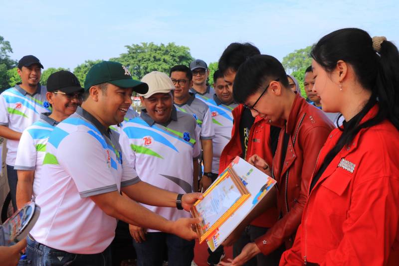 Di akhir acara, Arief dan Sachrudin, yang didampingi Ketua PGRI Pusat, Kepala Dinas Pendidikan, turut membagikan hadiah kepada para peserta gerak jalan, berupa tiket umroh, sepeda, kulkas, televisi dan lain sebagainya.