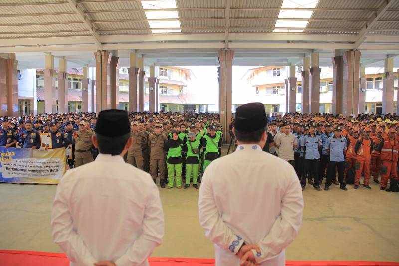 Usai berpamitan dengan para pegawai Pemerintah Kota (Pemkot) Tangerang jelang berakhirnya masa jabatan yang tinggal menghitung hari, Wali Kota Tangerang, Arief R. Wismansyah bersama wakilnya, H. Sachrudin, turut berpamitan dengan para petugas lapangan dalam apel yang digelar di Selasar Puspem, Jumat, (22/12).