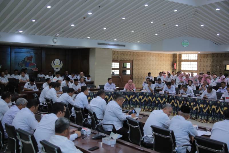 Dalam rangka mendorong percepatan berbagai program pembangunan dan pelayanan di masa transisi, Penjabat (Pj) Wali Kota, Nurdin, menggelar rapat perdana bersama para Kepala Perangkat Daerah beserta camat lurah usai apel di Ruang Rapat Akhlakul Karimah, Rabu, (27/12).