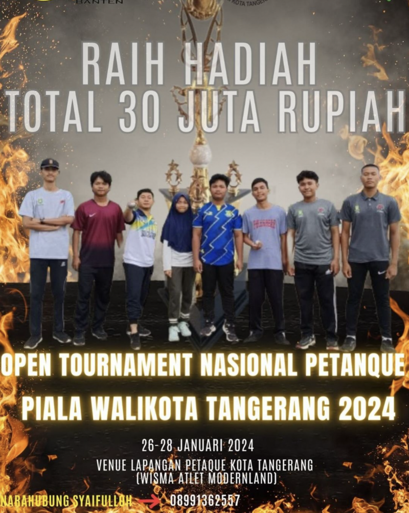 Ia melanjutkan, Petanque Open Tournament National Wali Kota Tangerang Cup 2024 ini akan diselenggarakan di Venue Petanque, Wisma Atlet Modernland, Kota Tangerang, pada 26-28 Januari 2024 mendatang. Dinilai sebagai salah satu kejuaraan bergengsi secara nasional, Petanque Open Tournament National Wali Kota Tangerang Cup 2024 digelar dengan memperebutkan total hadiah sebesar 30 juta rupiah.