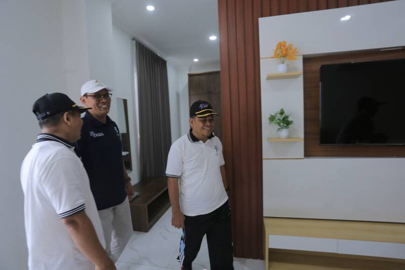 Pj Wali Kota meninjau beberapa ruangan di Gedung Asrama Haji Cipondoh, seperti kamar ruang tunggu, ruang makan, dan ruang kesehatan.