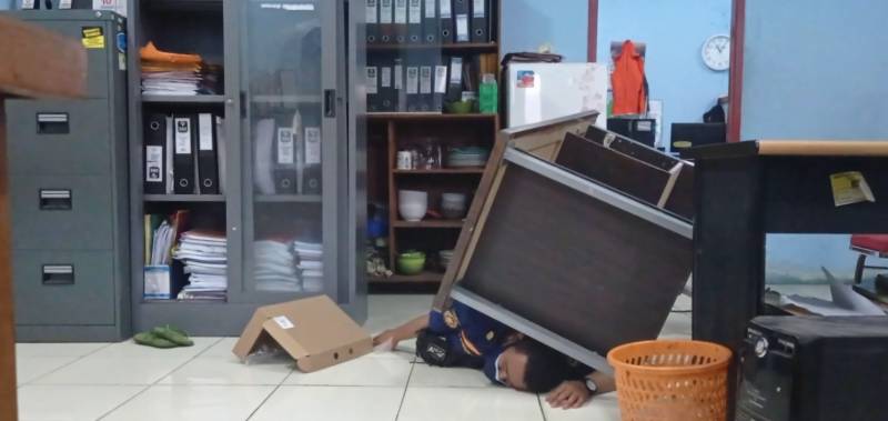“Untuk langkah-langkah responsifnya dapat dilakukan dengan cara jangan panik, berada di bawah meja, melindungi diri dengan peralatan sekitar, serta secepatnya menuju lokasi titik kumpul menggunakan jalur evakuasi yang berada di lingkungan sekitar, bila terjadi gempa bumi,” ujar Kepala BPBD Kota Tangerang, Maryono Hasan, Kamis, (4/1/24).