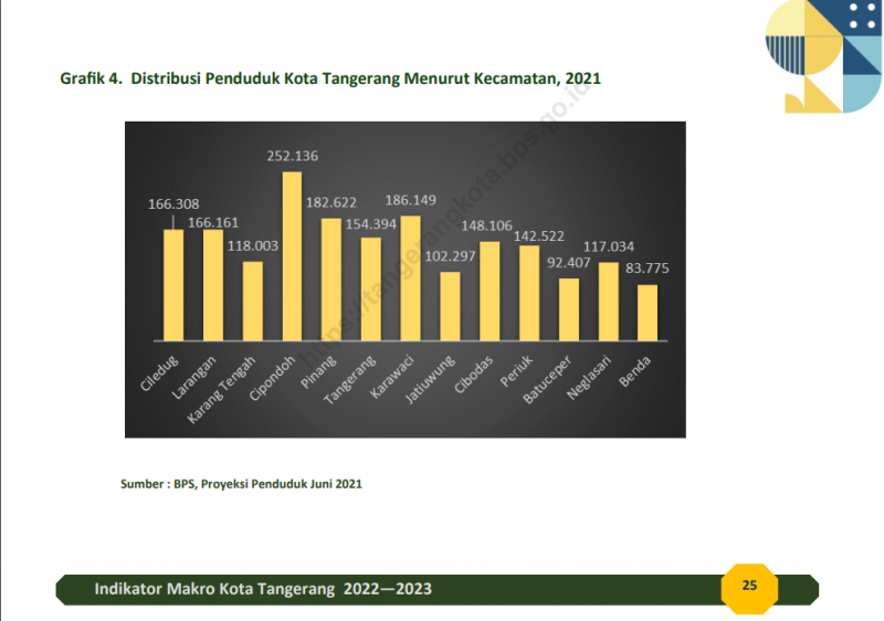 “Banyaknya penduduk juga tercatat terdistribusi hampir secara merata di seluruh kecamatan yang ada, sehingga tidak ada ketimpangan antar wilayah di Kota Tangerang,” tambahnya.
