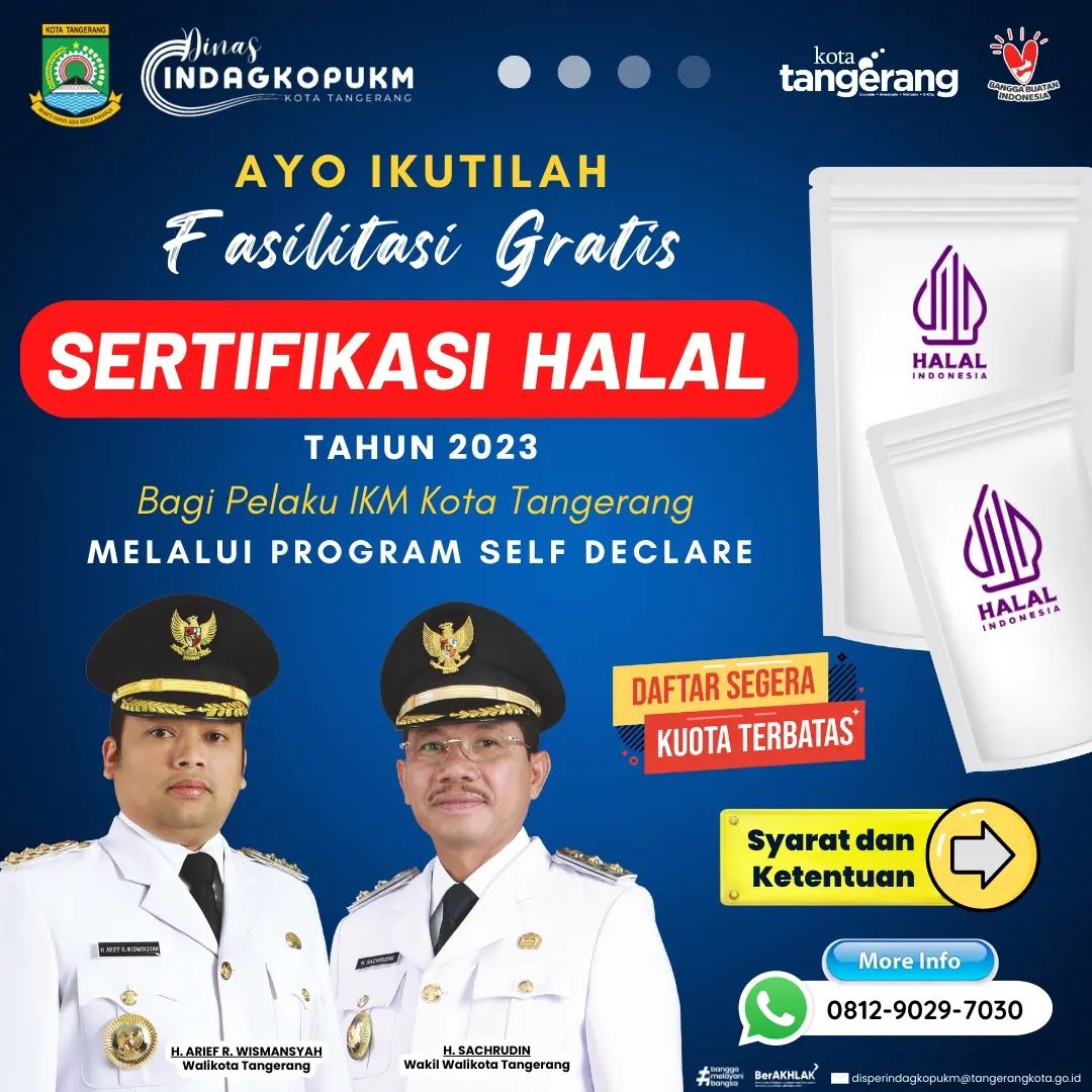 Kabar baik untuk pelaku Industri Kecil dan Menengah (IKM) di Kota Tangerang. Pemerintah Kota (Pemkot) Tangerang melalui Dinas Perindustrian, Perdagangan, Koperasi, Usaha Kecil dan Menengah (Disperindagkop UKM) membuka pendaftaran sertifikasi halal gratis untuk IKM di Kota Tangerang.