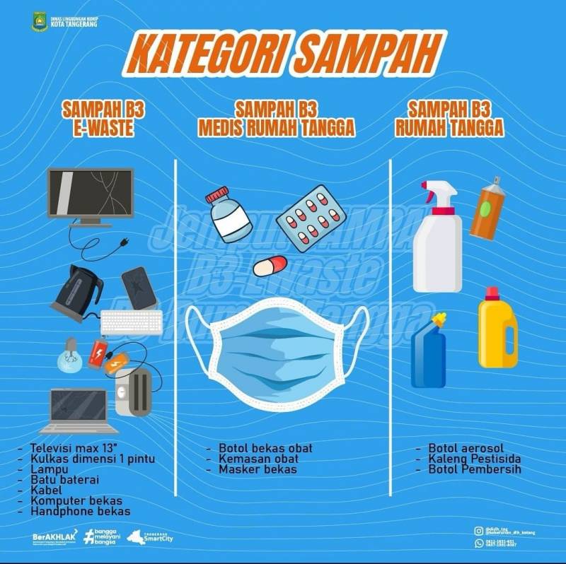 Ia pun menjelaskan, yang termasuk dalam limbah B3 e-Waste adalah televisi, kulkas dimensi satu pintu, lampu, batu baterai, kabel, komputer bekas dan handphone bekas. Sedangkan B3 medis rumah tangga ialah botol bekas obat, kemasan obat dan masker bekas dan yang termasuk B3 rumah tangga ialah botol aerosol, kaleng pestisida dan botol pembersih.