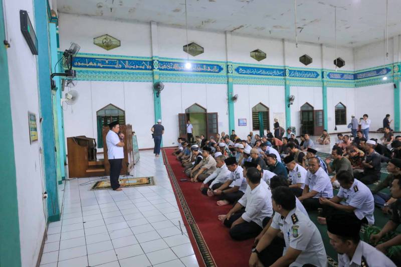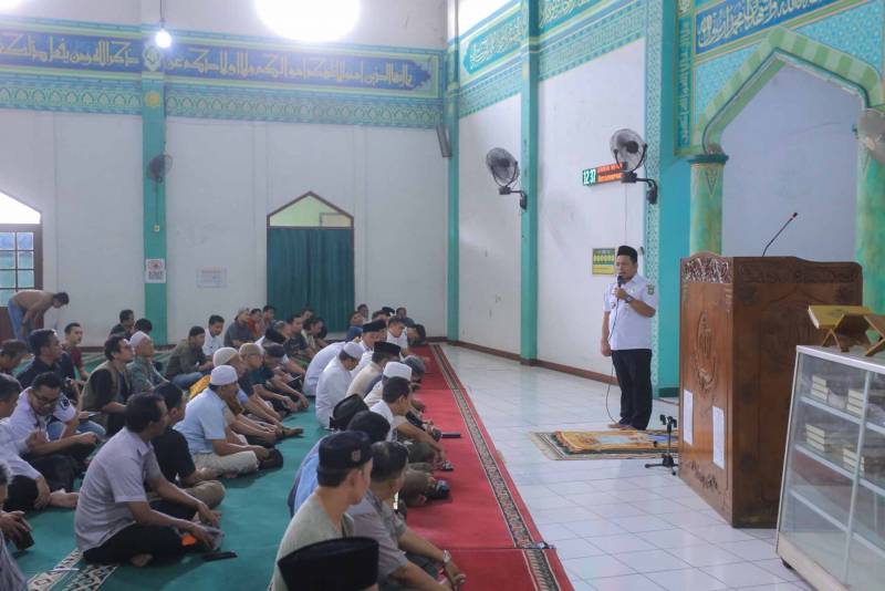 Penjabat (Pj) Wali Kota Tangerang, Dr. Nurdin, melaksanakan ibadah Salat Zuhur berjamaah sekaligus bersilaturahmi dengan para pedagang Pasar Anyar di Masjid Al-Jihad, Pasar Anyar, Rabu, (31/01).