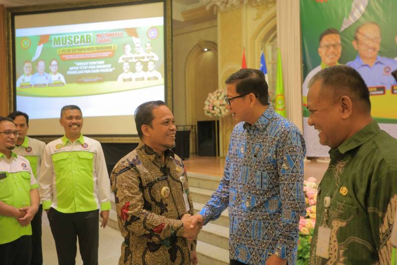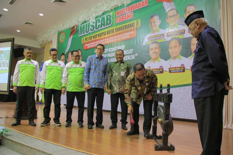 Penjabat (Pj) Wali Kota Tangerang, Dr. Nurdin, hadir sekaligus membuka langsung Musyawaraha Cabang (Muscab) Pimpinan Cabang Federasi Serikat Pekerja Kimia, Energi dan Pertambangan Konfederasi Serikat Pekerja Seluruh Indonesia (PC FSP KEP KSPSI) yang digelar di Hotel Istana Nelayan Jatiuwung, Kamis, (01/02/2024).
