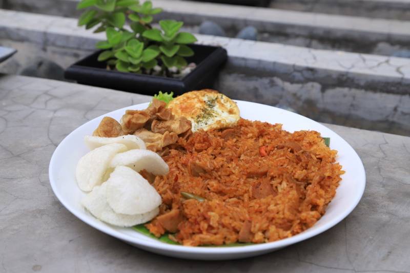 Tidak hanya itu, Renjana Titik Kumpul juga menyediakan menu makanan dan minuman yang cukup spesial. Seperti, nasi goreng spesial bercampur cita rasa ebi diiringi es kopi susu yang khas membuat suasana ngopi semakin nyaman untuk semua kalangan. Terlebih, menu makanan dan minuman di Renjana Titik Kumpul dijual dengan harga yang sangat terjangkau.