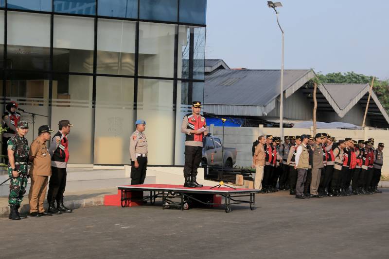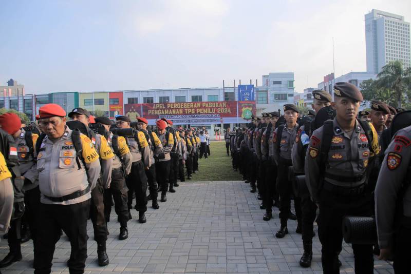 Penjabat (Pj) wali kota, Dr. Nurdin, menghadiri sekaligus memberikan arahan dalam Apel Pergeseran Pasukan Pengamanan Tempat Pemungutan Suara (TPS) Pemilihan Umum (Pemilu) 2024 yang berlangsung di Lapangan Apel Kantor Polres Metro Tangerang Kota, Babakan, Senin, (12/02).