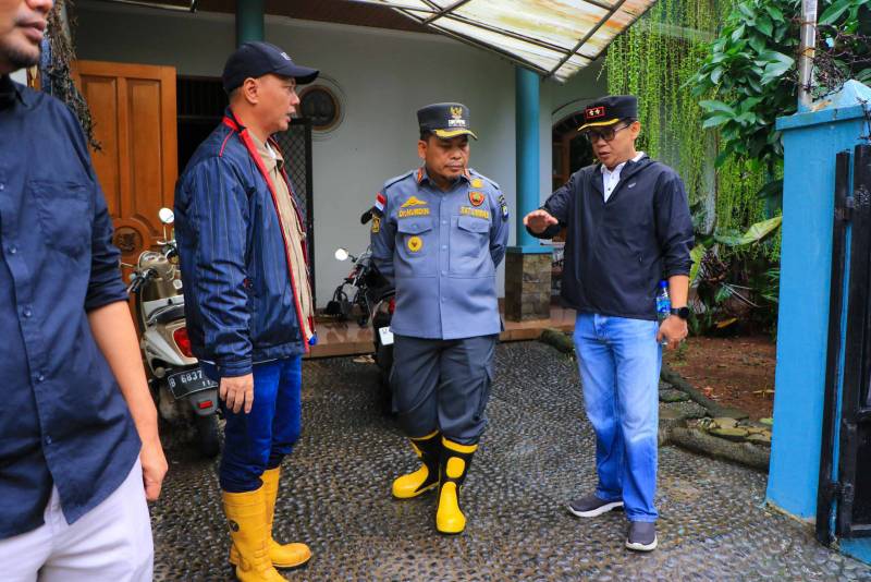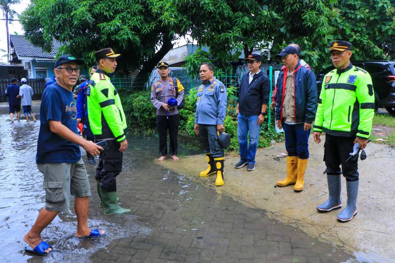 Penjabat (Pj) Wali Kota Tangerang, Dr. Nurdin, bersama dengan Kapolres Metro Tangerang Kota bergegas meninjau titik lokasi banjir yang juga sebagai lokasi pemungutan suara.