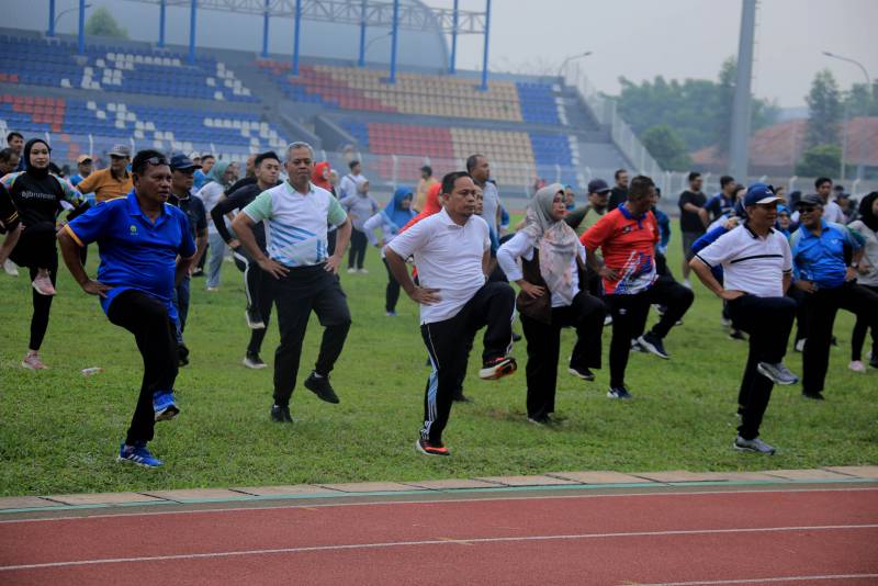 Penjabat (Pj) Wali Kota Tangerang, Dr. Nurdin, yang hadir dan berbaur dengan masyarakat terlihat sangat antusias mengikuti senam sehat yang turut dihadiri oleh para Kepala Perangkat Daerah serta pegawai di Lingkungan Pemkot Tangerang.