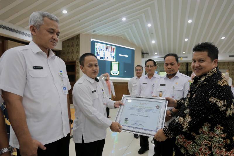 Penghargaan tersebut, diterima langsung oleh Pj Wali Kota Tangerang, Dr. Nurdin, yang didampingi Sekretaris Daerah dan Kepala Perangkat Daerah terkait, yang berlangsung di Ruang Akhlakul Karimah, Pusat Pemerintahan Kota Tangerang, Rabu (21/02).