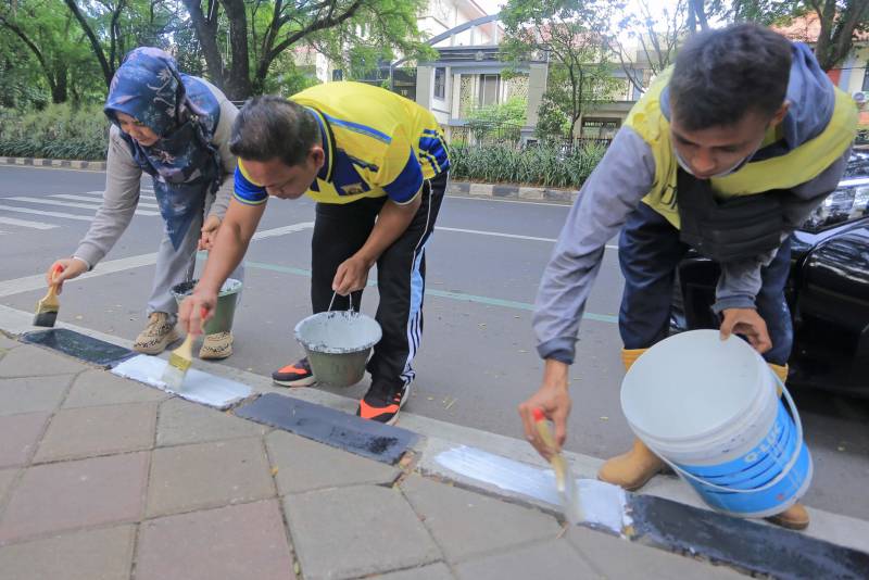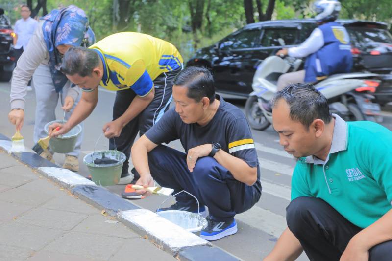 Penjabat (Pj) Wali Kota Tangerang, Dr. Nurdin, didampingi Sekretaris Daerah (Sekda) Kota Tangerang, Herman Suwarman, turut hadir meninjau sekaligus ikut melakukan pengecatan kanstin di kawasan Tugu Adipura Kota Tangerang, Jumat pagi, (23/02).