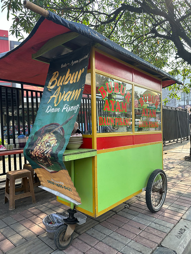 “Saya menjual, satu porsi bubur seharga Rp18 ribu, bisa juga memesan bubur setengah porsi seharga Rp12 ribu. Kami juga menyediakan sate-satean seperti telur puyuh, usus dan ati ampela dengan kisaran harga Rp3 ribu hingga Rp5 ribu per tusuknya,” jelas Yanto.