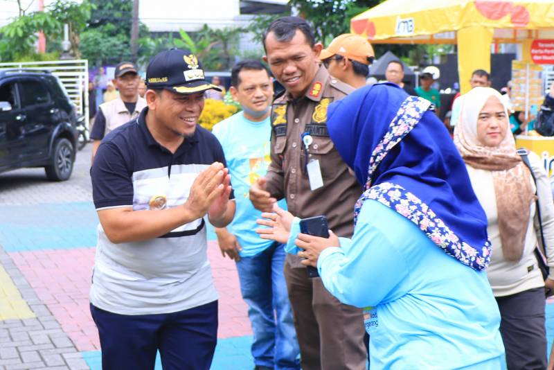 Penjabat (Pj) Wali Kota Tangerang, Dr. Nurdin, turut berkesempatan hadir dan menyapa masyarakat yang memadati Lapangan Kecamatan Karawaci untuk mengikuti rangkaian kegiatan seperti Gerak Jalan Sehat, hiburan dan juga bazar UMKM serta Pembagian Doorprize dan hadiah-hadiah, Minggu, (25/02).