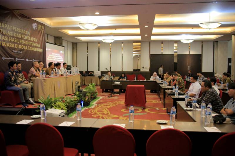 Penjabat (Pj) Wali Kota Tangerang, Dr. Nurdin, menghadiri Rapat Persiapan Rekapitulasi dan Penetapan Rekapitulasi Hasil Penghitungan Perolehan Suara di Kota Tangerang yang diinisiasi oleh Komisi Pemilihan Umum (KPU) Kota Tangerang bertempat di Day's Hotel, Kecamatan Neglasari, Senin, (26/02).