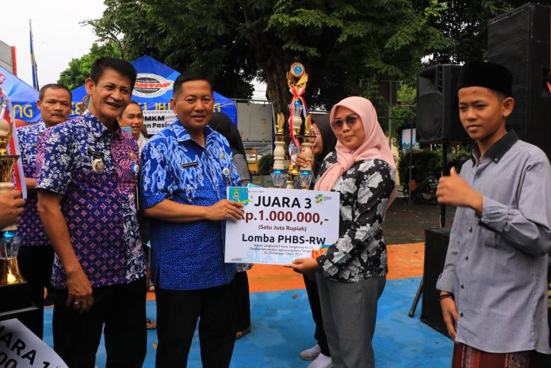 Sekretaris Daerah Kota Tangerang, Herman Suwarman, berkesempatan hadir menutup rangkaian kegiatan sekaligus membagikan hadiah lomba kepada masyarakat Jatiuwung.