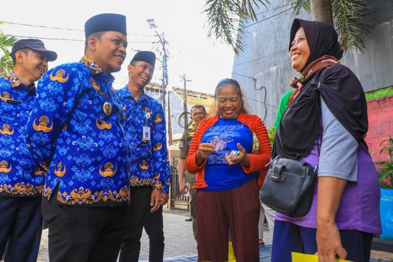 Penjabat (Pj) Wali Kota Tangerang, Dr. Nurdin, pun turut berkesempatan meninjau sekaligus menyapa warga yang hadir memenuhi halaman Kantor Kelurahan Margasari, Kelurahan Karawaci, untuk membeli beras dan bahan pokok serta komoditi lain yang dijual dalam GPM Ramadan.
