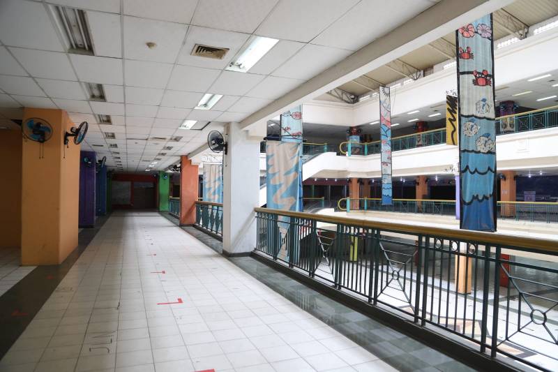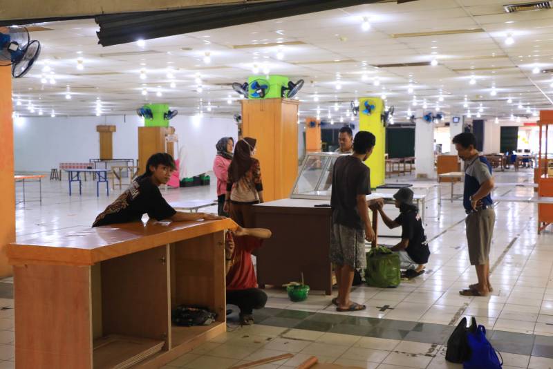 Plaza Shinta, Kelurahan Cimone Jaya, Kecamatan Karawaci, Kota Tangerang sebagai salah satu lokasi sementara pedagang Pasar Anyar Tangerang berangsur mulai terisi. Terlihat, sejumlah pedagang mulai mempersiapkan meja-meja di setiap lapaknya, Selasa (19/3/24).