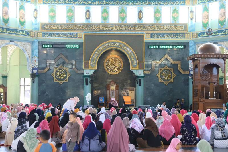 Masjid Raya Al-A’zhom Kota Tangerang mengadakan kajian spesial bulan suci Ramadan. Kali ini kajian tersebut mendapat antusias luar biasa dari masyarakat Kota Tangerang, karena menghadirkan penceramah kondang Ustazah Mamah Dedeh, Rabu (20/3/2024).