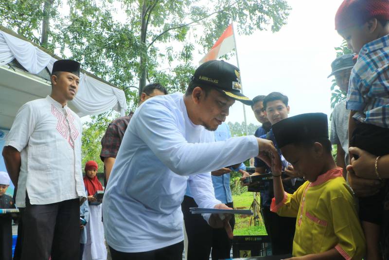 Diakhir acara, Penjabat Wali Kota yang didampingi Kepala Kesbangpol, Camat Cibodas menyerahkan santunan kepada 50 anak yatim.