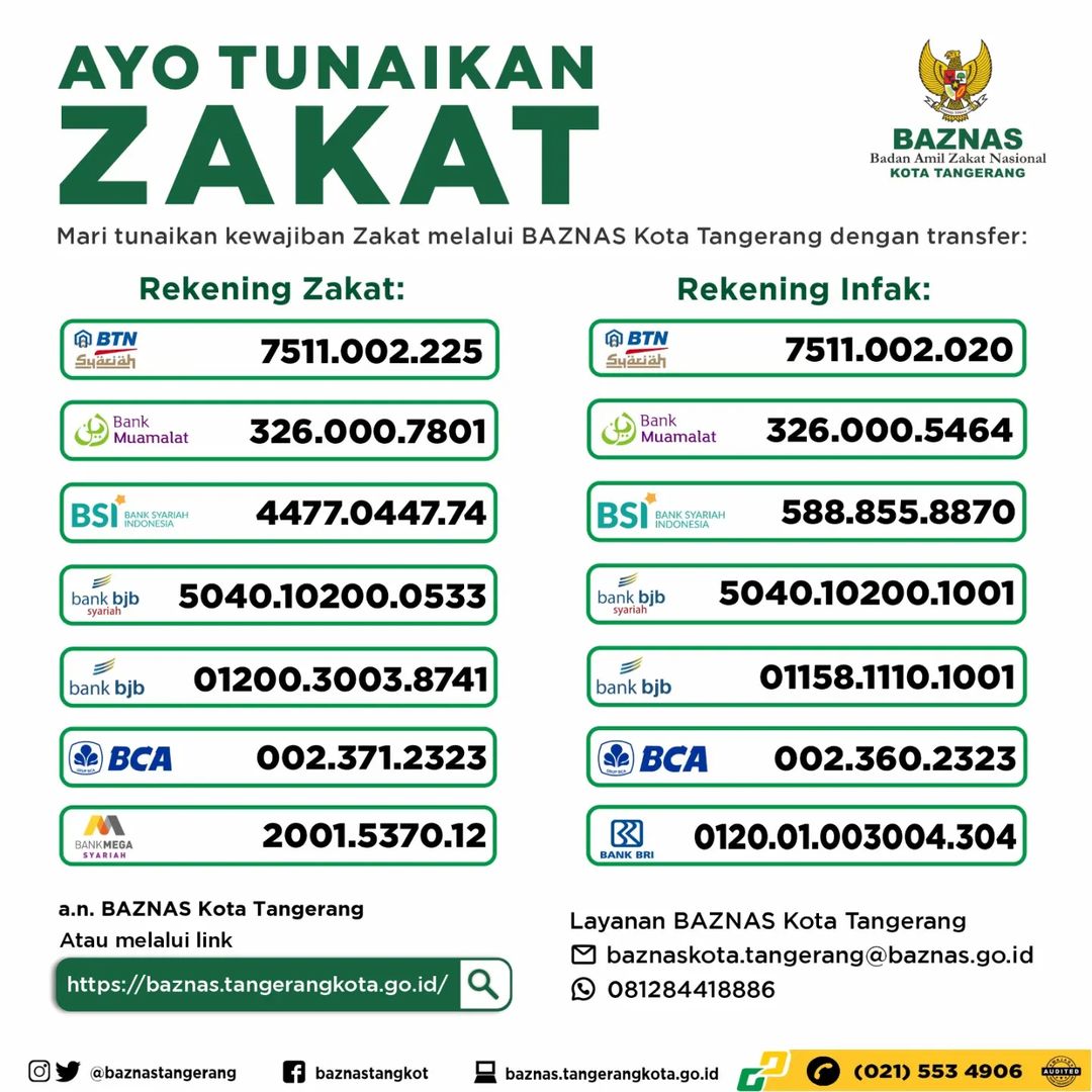 Badan Amil Zakat Nasional (BAZNAS) Kota Tangerang sebagai pengelola zakat terpercaya, memberikan kemudahan dalam membayar kewajiban zakat fitrah dengan melalui online yakni transfer ke rekening BAZNAS Kota Tangerang.