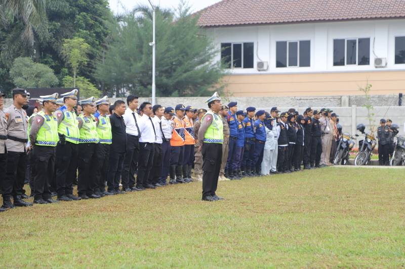 "Dalam kegiatan ini, seluruh pihak saling menetapkan koordinasi antarpetugas, instansi terkait dan stakeholder terlibat. Mengecek kesiapan seluruh pasukan pengamanan," tegas Zain, usai apel.