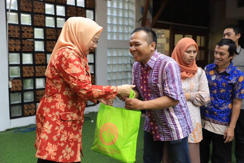 Dharma Wanita Persatuan (DWP) Kota Tangerang membagikan paket sembako kepada petugas kebersihan kantor atau office boy (OB) di lingkup Pemerintah Kota Tangerang, Kamis 4 April 2024. Acara yang dilakukan di Patio Pusat Pemerintahan Kota Tangerang ini sebagai upaya peduli terhadap sesama khususnya di bulan Ramadan.