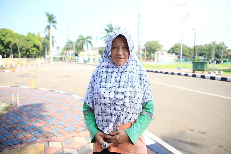 Salah seorang petugas penyapu jalan, Aan Srihana yang telah mengabdi sejak tahun 2005. Lahir di Kuningan, Jawa Barat, ia bersama suami pindah ke Kota Tangerang untuk memperbaiki ekonomi keluarga. Akhirnya, ia mendapatkan pekerjaan sebagai petugas penyapu jalan di bawah naungan Dinas Lingkungan Hidup.