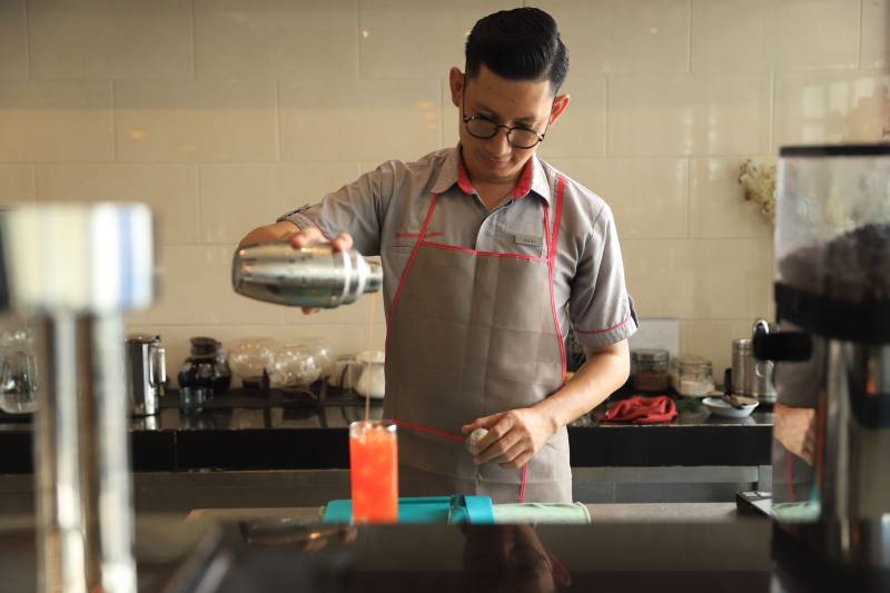 “Salah satu menu paling digemari di sini, tidak lain adalah aneka kopi kekinian, mulai dari aerocano sampai kopi botol siap saji yang bisa dinikmati di manapun dengan pilihan rasa spesial, mulai dari cappuccino, latte, sampai gula aren,” tambahnya.