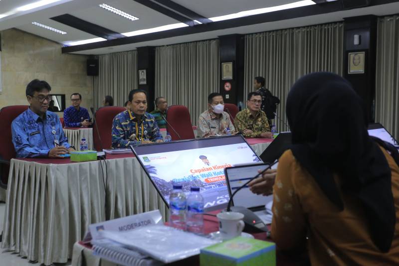Penjabat (PJ) Wali Kota Tangerang, Dr. Nurdin, memaparkan capaian kinerja pasca tiga bulan menjabat sebagai Kepala Daerah dihadapan Tim Evaluator Inspektorat Kementerian Dalam Negeri (Kemendagri), Kamis (25/04).