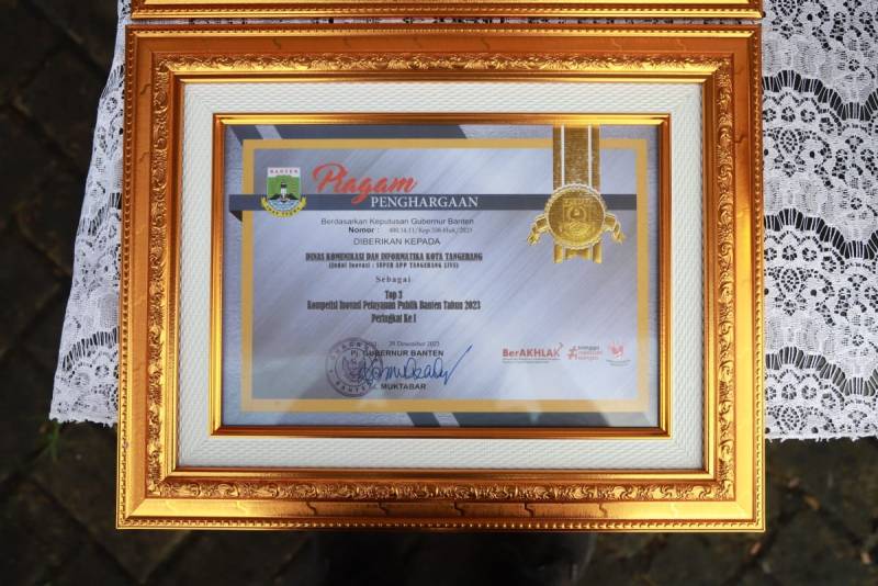 Kembali menorehkan penghargaan di tingkat provinsi, Pemerintah (Pemkot) Tangerang melalui Dinas Komunikasi dan Informatika (Diskominfo) meraih dua penghargaan Kompetisi Inovasi Pelayanan Publik (KIPP) Banten 2023. Penghargaan diberikan langsung oleh Penjabat (Pj) Gubernur Banten, Al Muktabar, Senin (29/4/24) di Kantor Gubernur Banten.