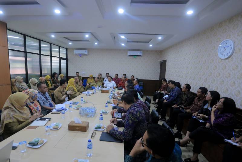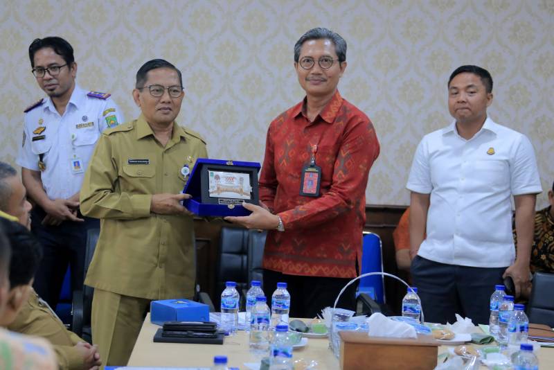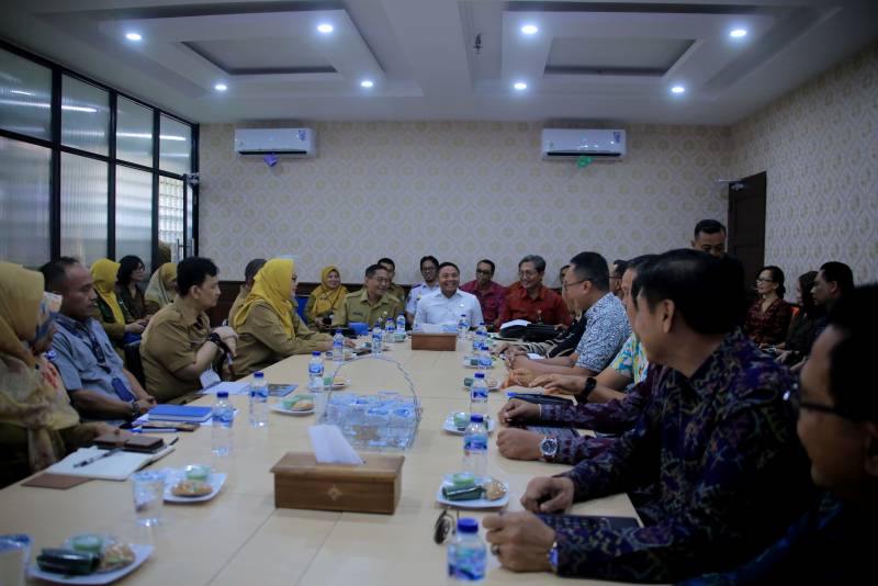 Sekretaris Daerah (Sekda) Kota Tangerang, Herman Suwarman, menerima kunjungan Tim Pengendalian Inflasi Daerah (TPID) Kabupaten Badung, di Ruang Rapat Sekda, Pusat Pemerintahan Kota Tangerang, Selasa (30/4). Kunjungan tersebut bertujuan untuk mempelajari strategi dan program pengendalian inflasi yang telah diterapkan di Kota Tangerang.