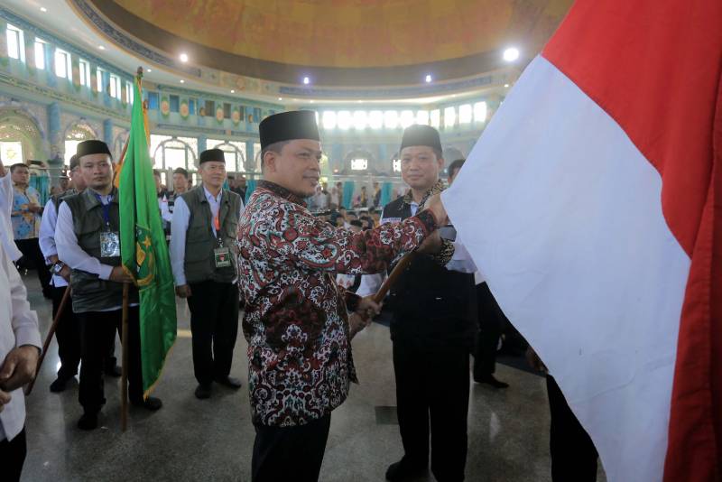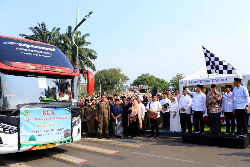 Penjabat Wali Kota Tangerang Doktor (Dr) Nurdin, bersama dengan Sekretaris Daerah Kota Tangerang, Herman Suwarman, melepas keberangkatan 431 jemaah Calon Haji (Calhaj) Kloter 02 JKG/Banten Kota Tangerang yang berlangsung di Masjid Raya Al-A'zhom, Kawasan Pusat Pemerintahan Kota Tangerang, Sabtu (11/05).