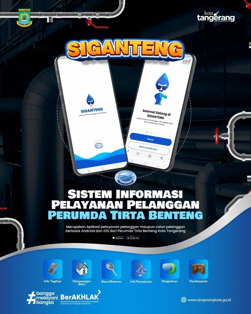 Perumda Tirta Benteng Kota Tangerang terus memudahkan pelanggan dalam menikmati layanannya. Salah satunya, dengan keberadaan aplikasi Sistem Informasi Pelanggan Tirta Benteng (SiGanteng), yang merupakan aplikasi pelayanan berbasis android dan iOS.