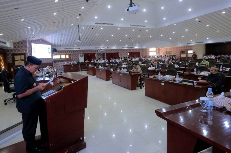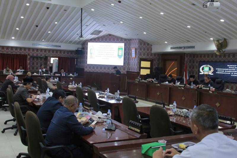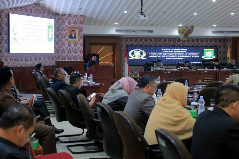 Penjabat (Pj) Wali Kota Tangerang, Dr. Nurdin menyampaikan jawaban terhadap pandangan umum fraksi-fraksi DPRD Kota Tangerang mengenai tiga buah Rancangan Peraturan Daerah (Raperda) dalam Rapat Paripurna DPRD Kota Tangerang.