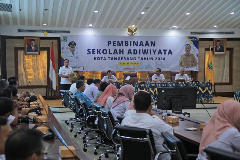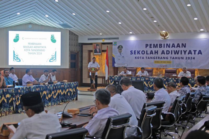 Penjabat (Pj) Wali Kota Tangerang, Dr. Nurdin, menghadiri sekaligus membuka kegiatan Pembinaan Sekolah Adiwiyata Kota Tangerang Tahun 2024 yang digelar di Ruang Rapat Akhlakul Karimah Gedung Pusat Pemerintahan (PUSPEM) Kota Tangerang, Rabu, (29/05).