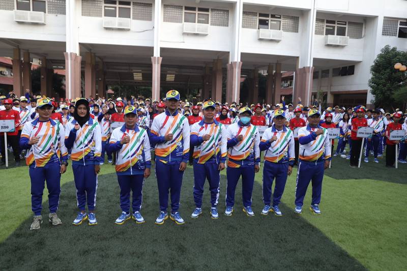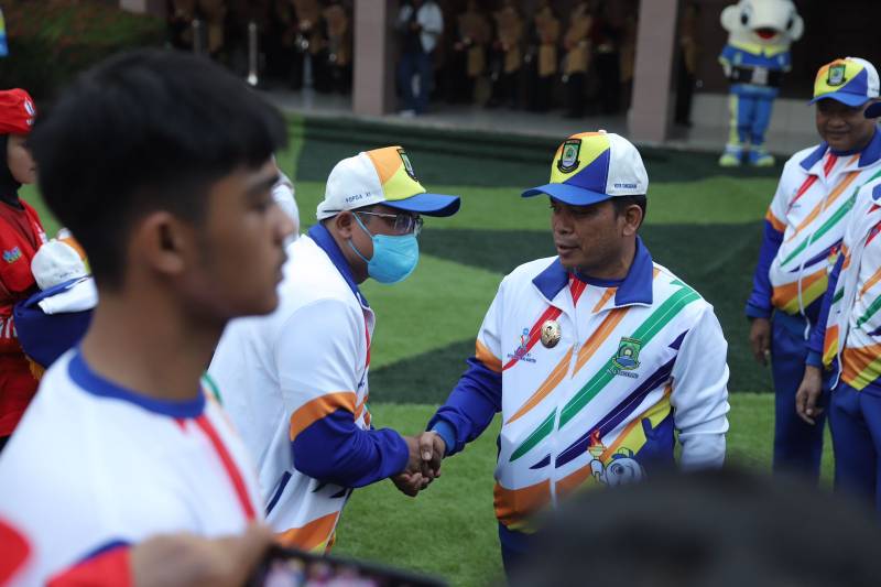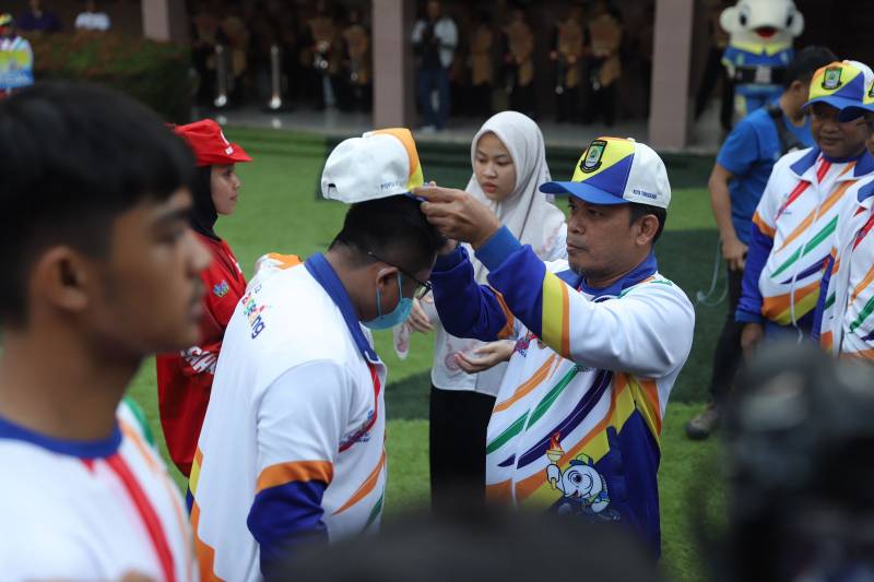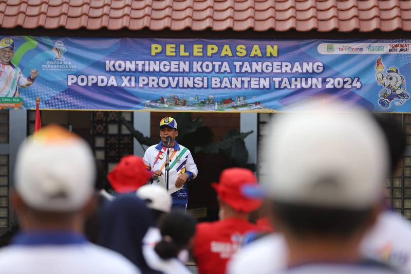 Penjabat (Pj) Wali Kota Tangerang Nurdin melepas kontingen atlet yang siap bertanding pada Pekan Olahraga Pelajar Daerah (POPDA) XI Banten, di Puspem Kota Tangerang, Jumat (7/6/24). Pada kesempatan ini, kontingen Kota Tangerang pun ditargetkan mampu menjadi juara umum.