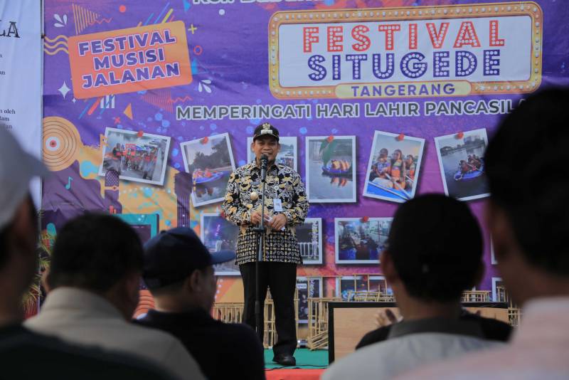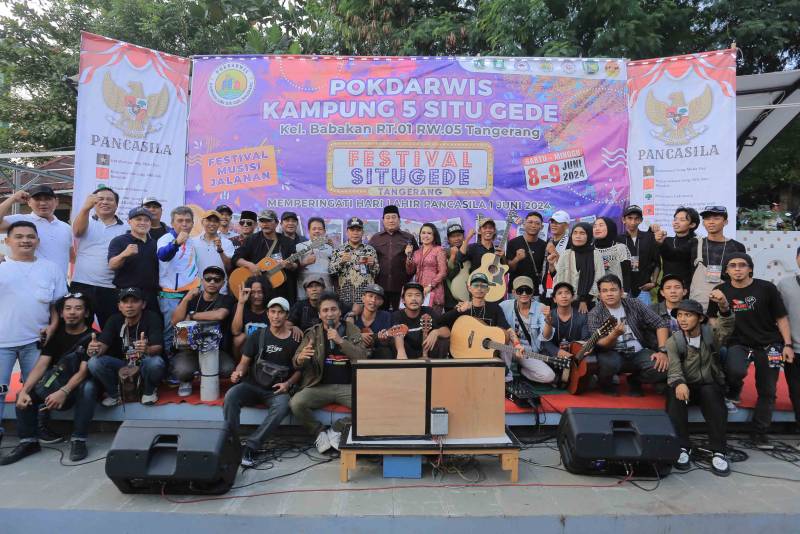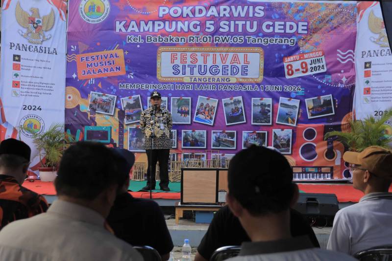 Penjabat (Pj) Wali Kota Tangerang, Doktor (Dr) Nurdin, hadir dalam kegiatan Festival Musisi Jalanan yang diinisiasi oleh Kelompok Sadar Wisata (POKDARWIS) Kampung Lima Situ Gede, yang digelar di Wisata Situ Gede, Kelurahan Babakan Kecamatan Tangerang, Kota Tangerang, Sabtu (8/6).