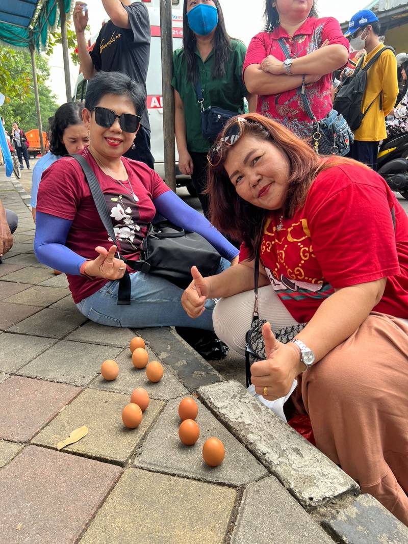 “Mendirikan telur pada pukul 11.00 hingga 13.00 WIB pada tanggal 5 bulan kelima kalender Cina dimaknai dengan berkah dari langit. Sebanyak satu peti telur diberikan kepada masyarakat yang datang, lalu siapapun yang dapat mendirikan telur maka akan mendapatkan berkah,” lanjutnya.