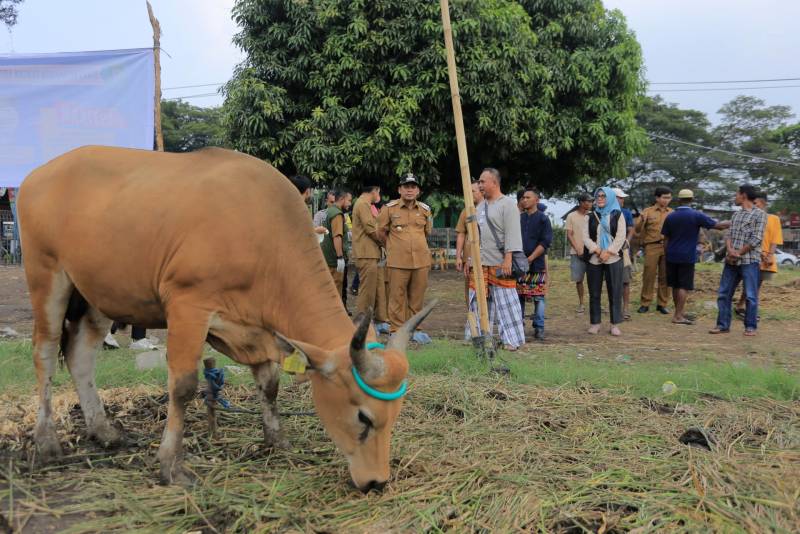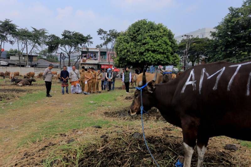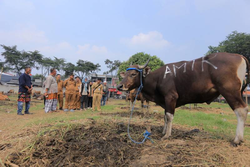 “Alhamdulillah, berdasarkan hasil skrining yang dilakukan oleh tim medis hewan, sapi-sapi yang dijual di sini dipastikan dalam kondisi sehat, tidak cacat, dan cukup umur. Hewan-hewan ini telah memenuhi kriteria yang disyaratkan untuk dijadikan hewan kurban, sehingga ibadah kurbannya insya Allah diterima oleh Allah SWT," jelas Pj Wali Kota, usai meninjau.