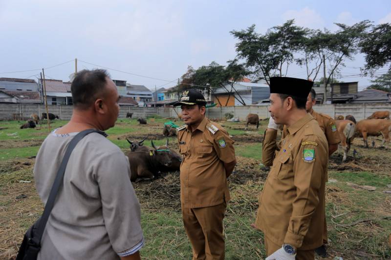 Menjelang Hari Raya Idul Adha 1445H/2024 M, Penjabat (Pj) Wali Kota Tangerang, Dr. Nurdin, meninjau langsung pelaksanaan skrining kesehatan hewan kurban yang berlokasi di lapak hewan Kurban, Cipondoh Makmur, Senin (10/6).
