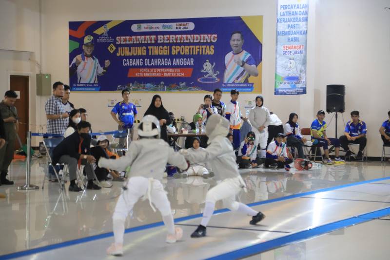 Terus bersinar, cabang olahraga (cabor) anggar Kota Tangerang pada Pekan Olahraga Pelajar Daerah (POPDA) XI Banten kembali meraih tiga medali. Yaitu satu emas dan dua perak. Pertandingan tersebut berlangsung di Tangerang Convention Center, Cimone, Kecamatan Karawaci, Kota Tangerang, Senin (10/6/24).
